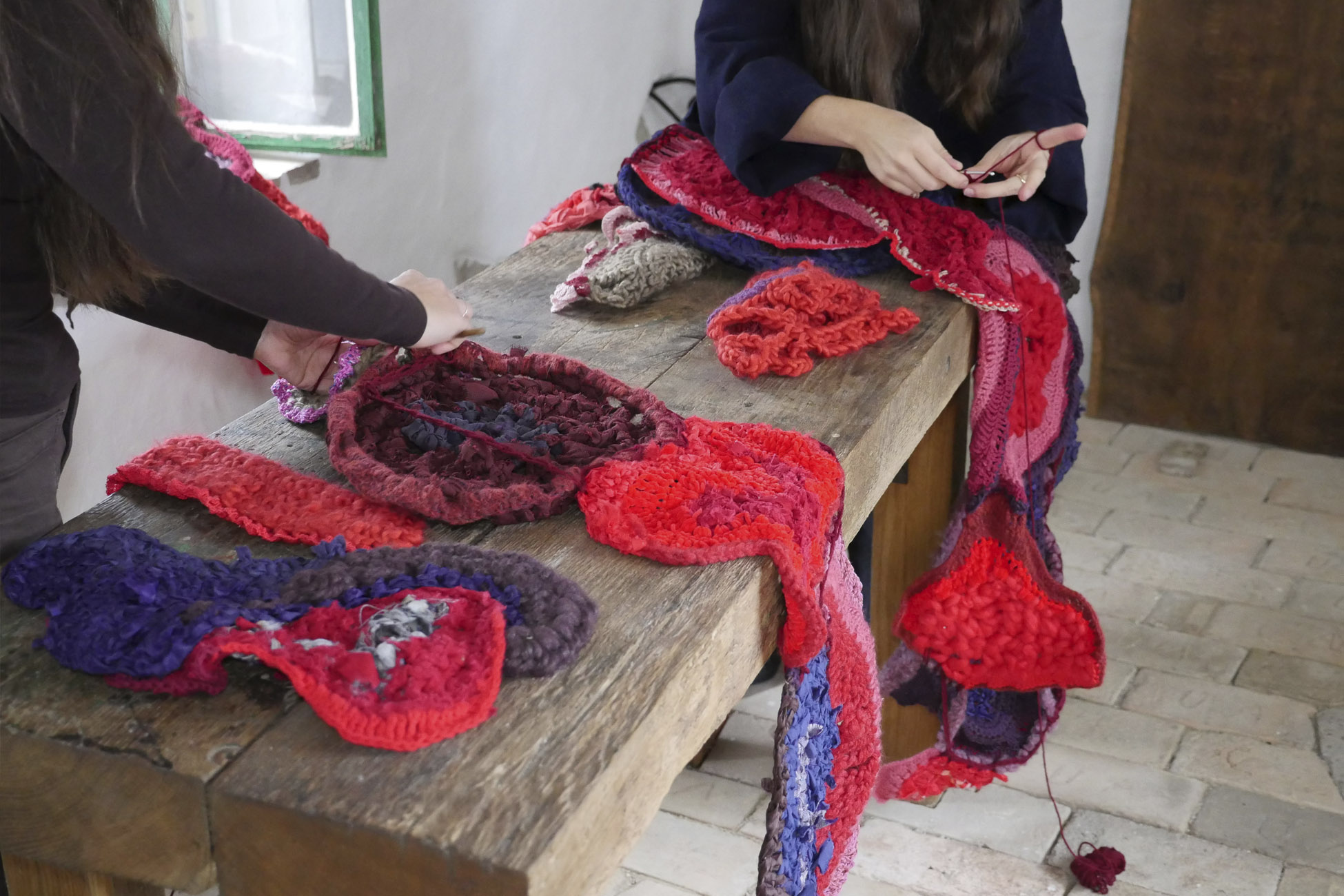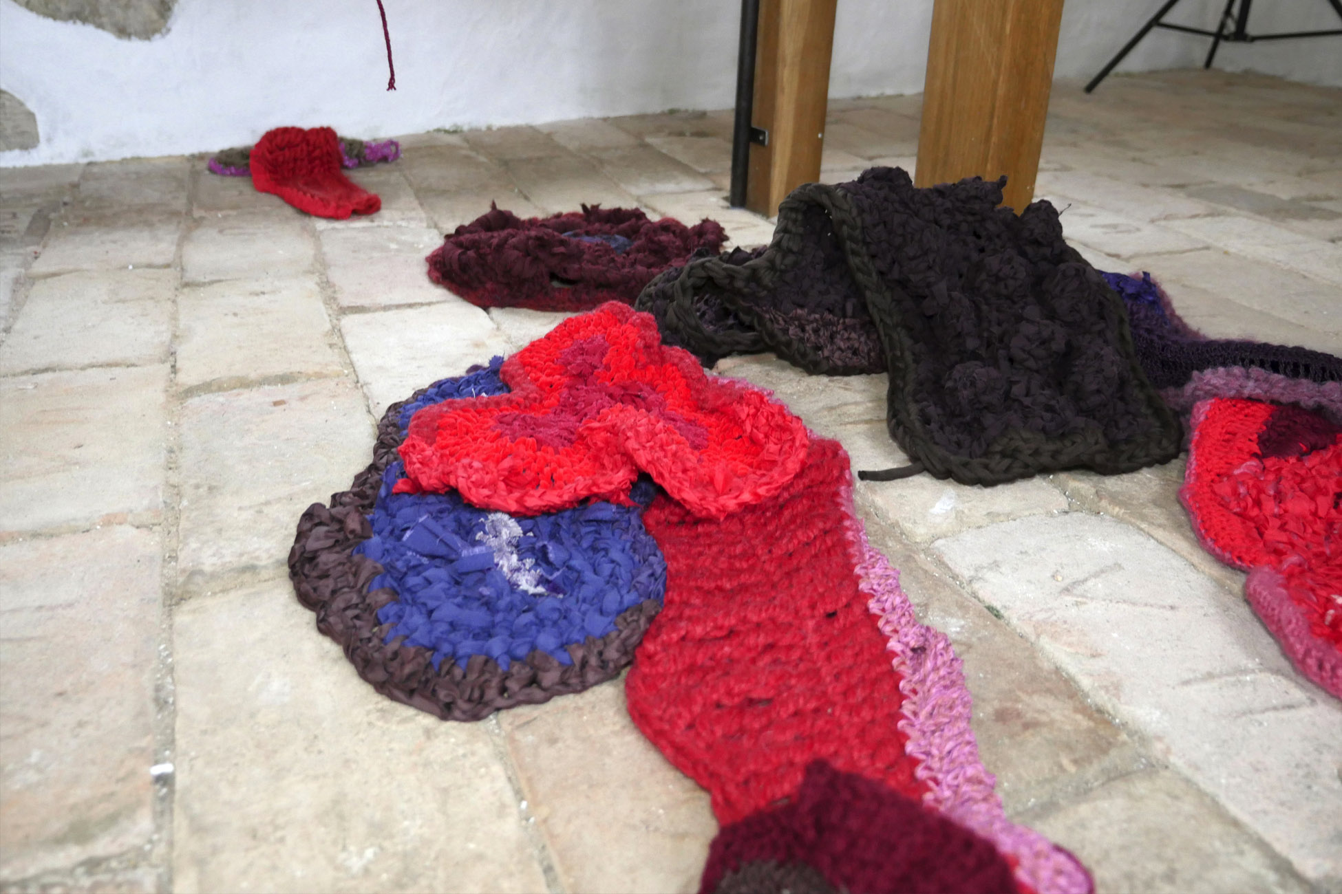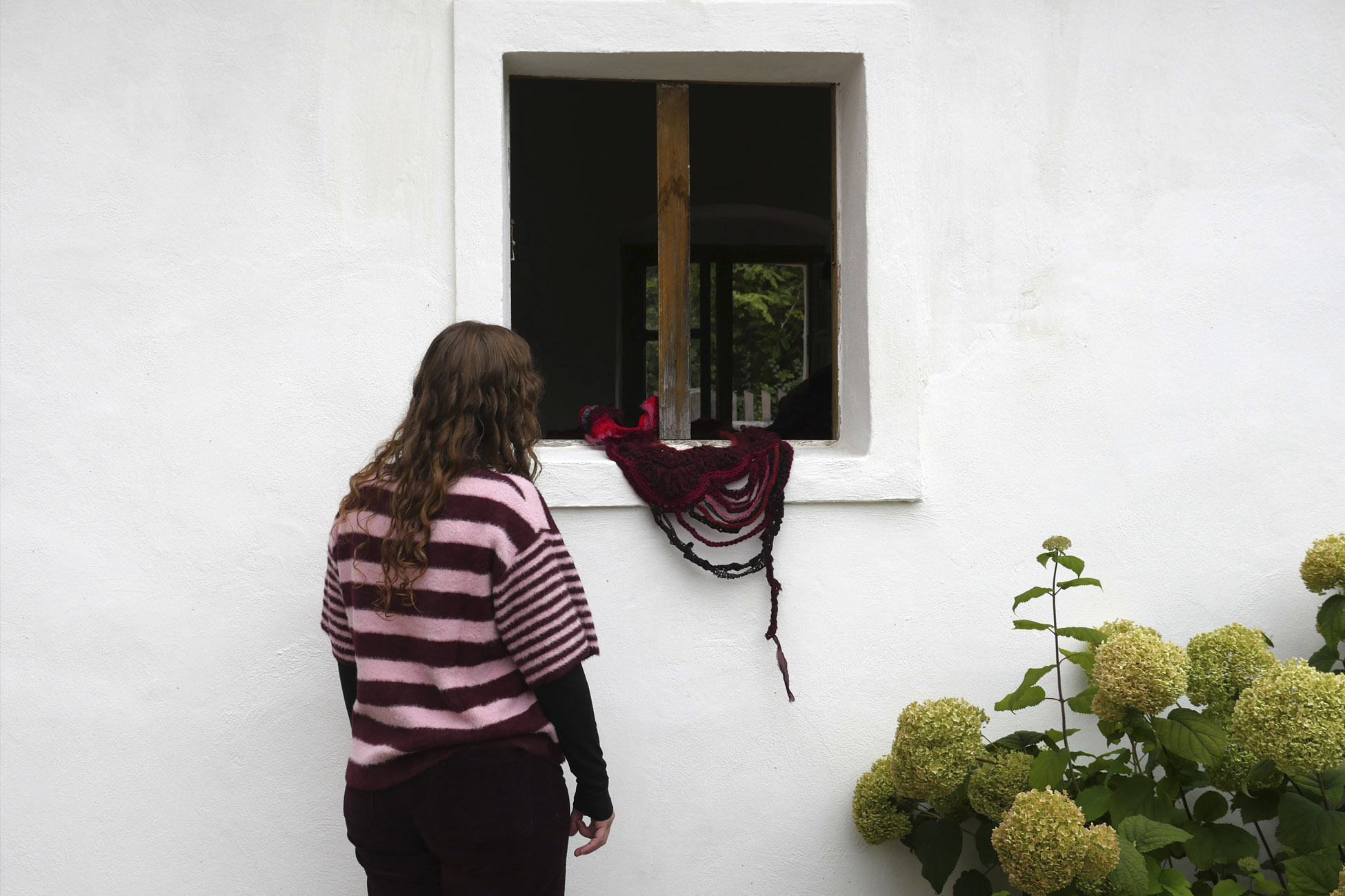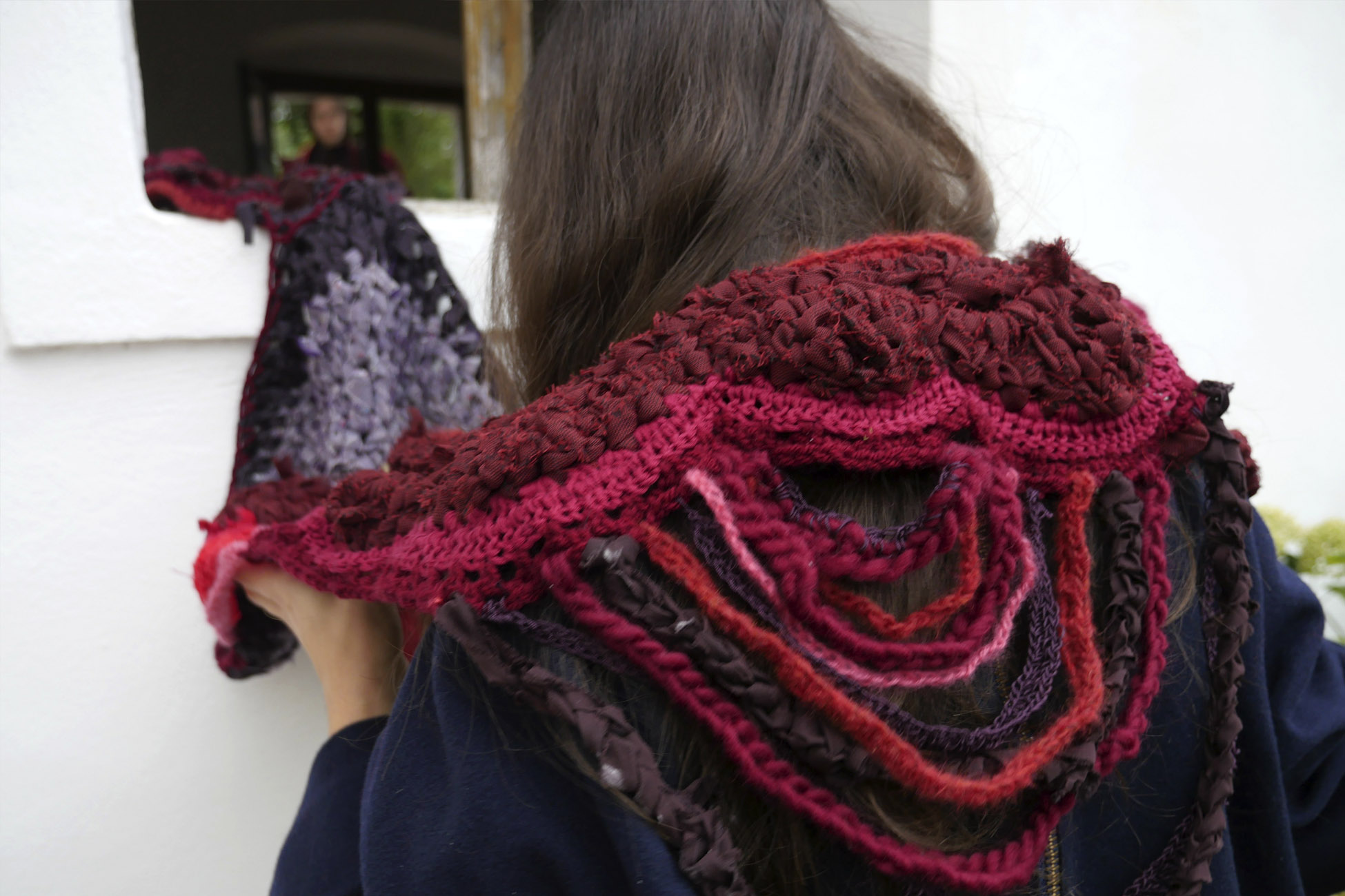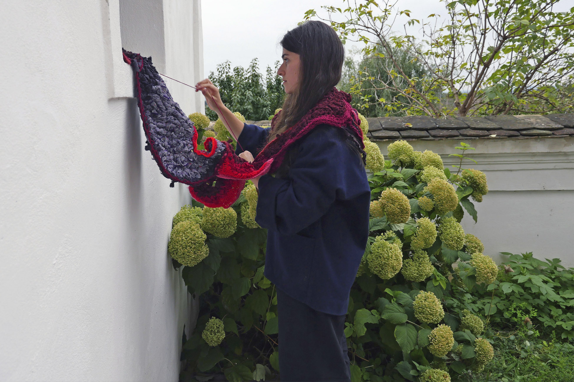 “MUME: Inside, Outwards and Back Within” is part of MUME’s annual program on memory and the right to be forgotten. The performance was conceived by Roberta Lazo Valenzuela (CL) and is presented in collaboration with Rosa Fuerpass-Netocny (AT). In her performance, Roberta Lazo crochets woolen threads reminiscent of organs while vocalizing songs of solace and belonging to mothers. In doing so, she unsettles the romanticized narrative of pregnancy and reveals the body as a vessel of both individual and collective memory.This body, oriented toward the functionality of nurturing a new other, later faces the grief of emptiness after having been occupied. Drawing from her personal experience, Lazo asks: How does this experience transform the relationship with one’s own body and identity? How does one reconnect with external normality and the surrounding world afterward? What memories are preserved, and what forgettings are set into motion? Inevitably, her proposal also alludes to the artist-as-vessel who, by hosting and nourishing, becomes filled and emptied, constantly deconstructing and reinventing. October 3, 2025, Kunstraum (former mortuary), Pfarrgarten, 3465 Koenigsbrunn am Wagram, Lower Austria. Photo: Manuela Picallo Gil.