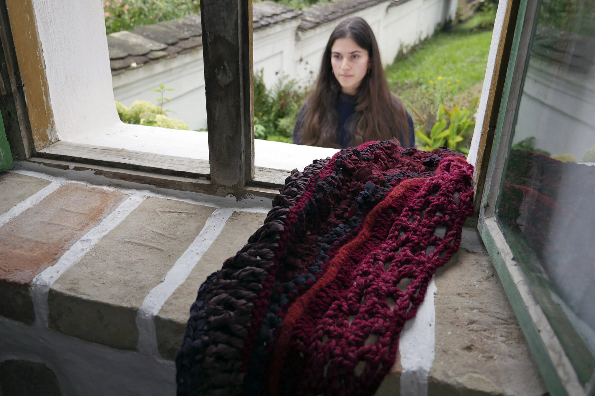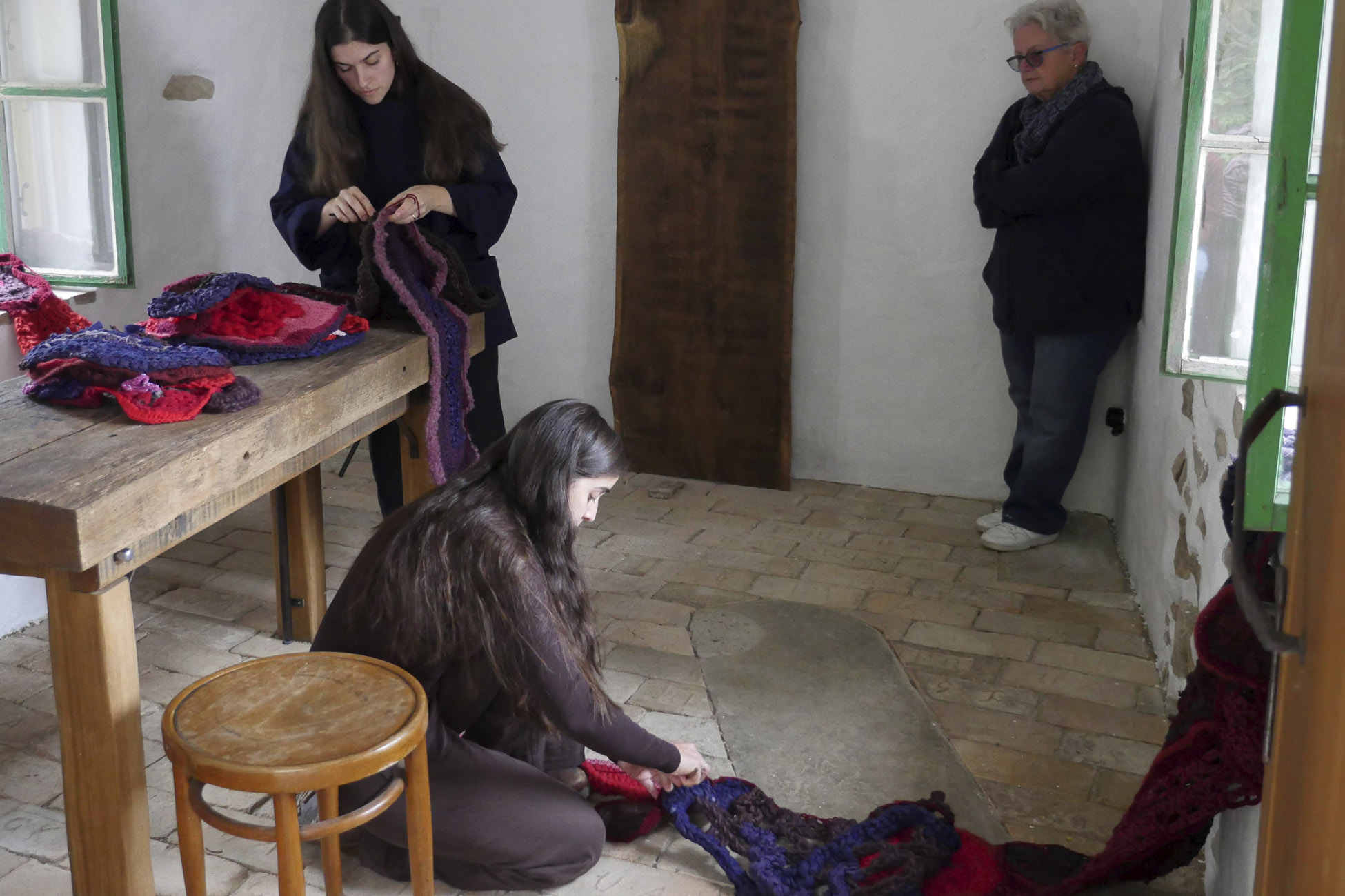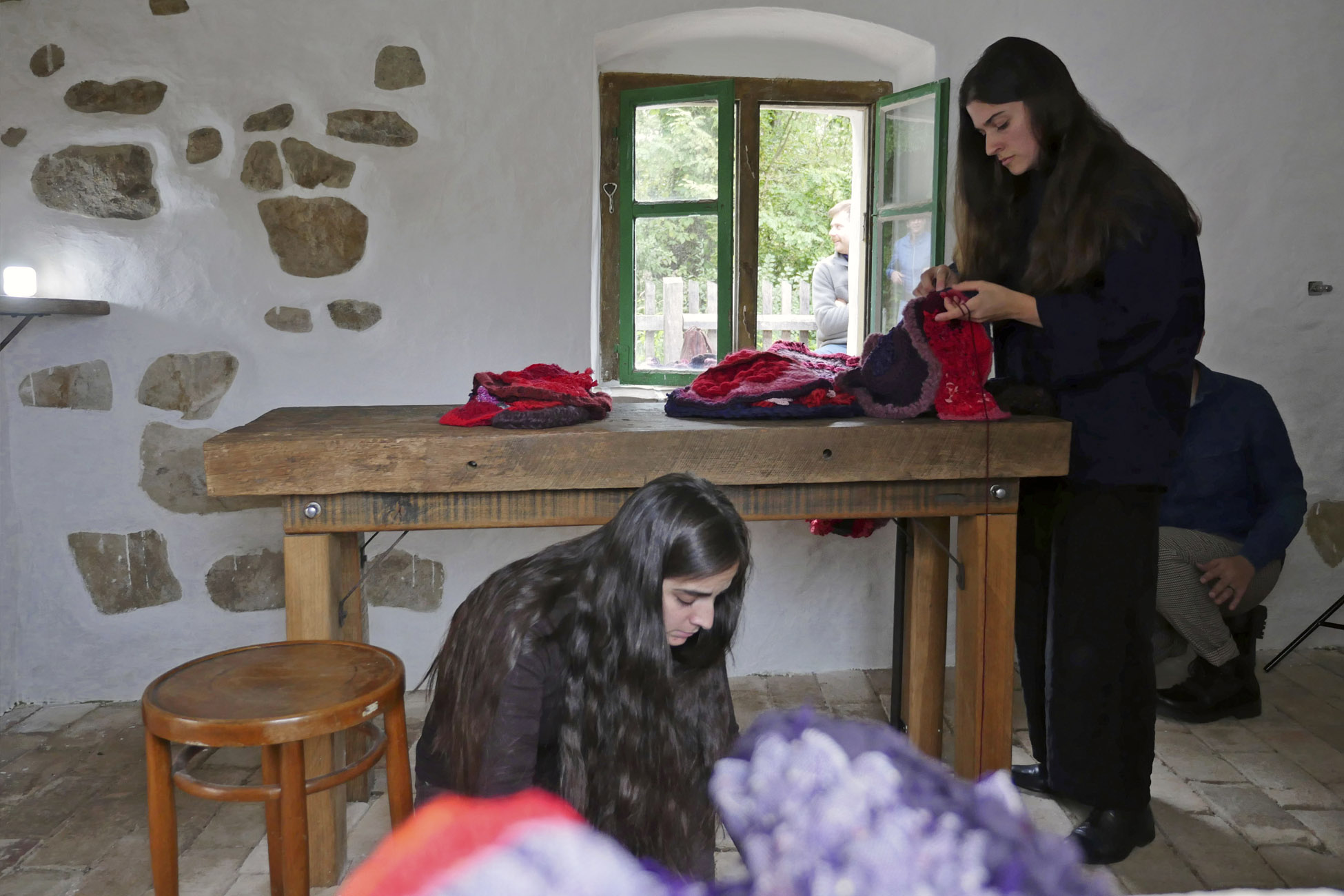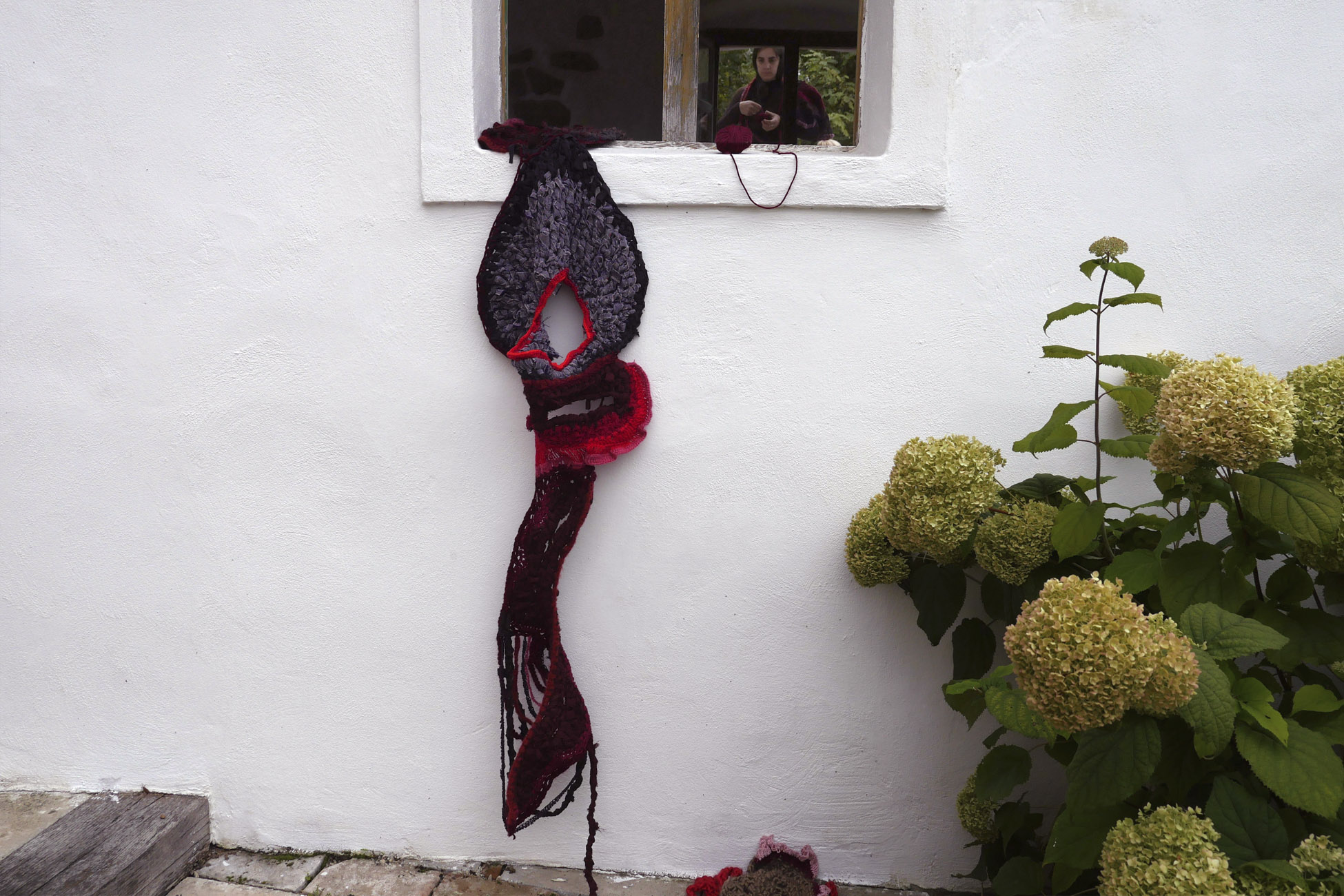 “MUME: Inside, Outwards and Back Within” is part of MUME’s annual program on memory and the right to be forgotten. The performance was conceived by Roberta Lazo Valenzuela (CL) and is presented in collaboration with Rosa Fuerpass-Netocny (AT). In her performance, Roberta Lazo crochets woolen threads reminiscent of organs while vocalizing songs of solace and belonging to mothers. In doing so, she unsettles the romanticized narrative of pregnancy and reveals the body as a vessel of both individual and collective memory.This body, oriented toward the functionality of nurturing a new other, later faces the grief of emptiness after having been occupied. Drawing from her personal experience, Lazo asks: How does this experience transform the relationship with one’s own body and identity? How does one reconnect with external normality and the surrounding world afterward? What memories are preserved, and what forgettings are set into motion? Inevitably, her proposal also alludes to the artist-as-vessel who, by hosting and nourishing, becomes filled and emptied, constantly deconstructing and reinventing. October 3, 2025, Kunstraum (former mortuary), Pfarrgarten, 3465 Koenigsbrunn am Wagram, Lower Austria. Photo: Manuela Picallo Gil.