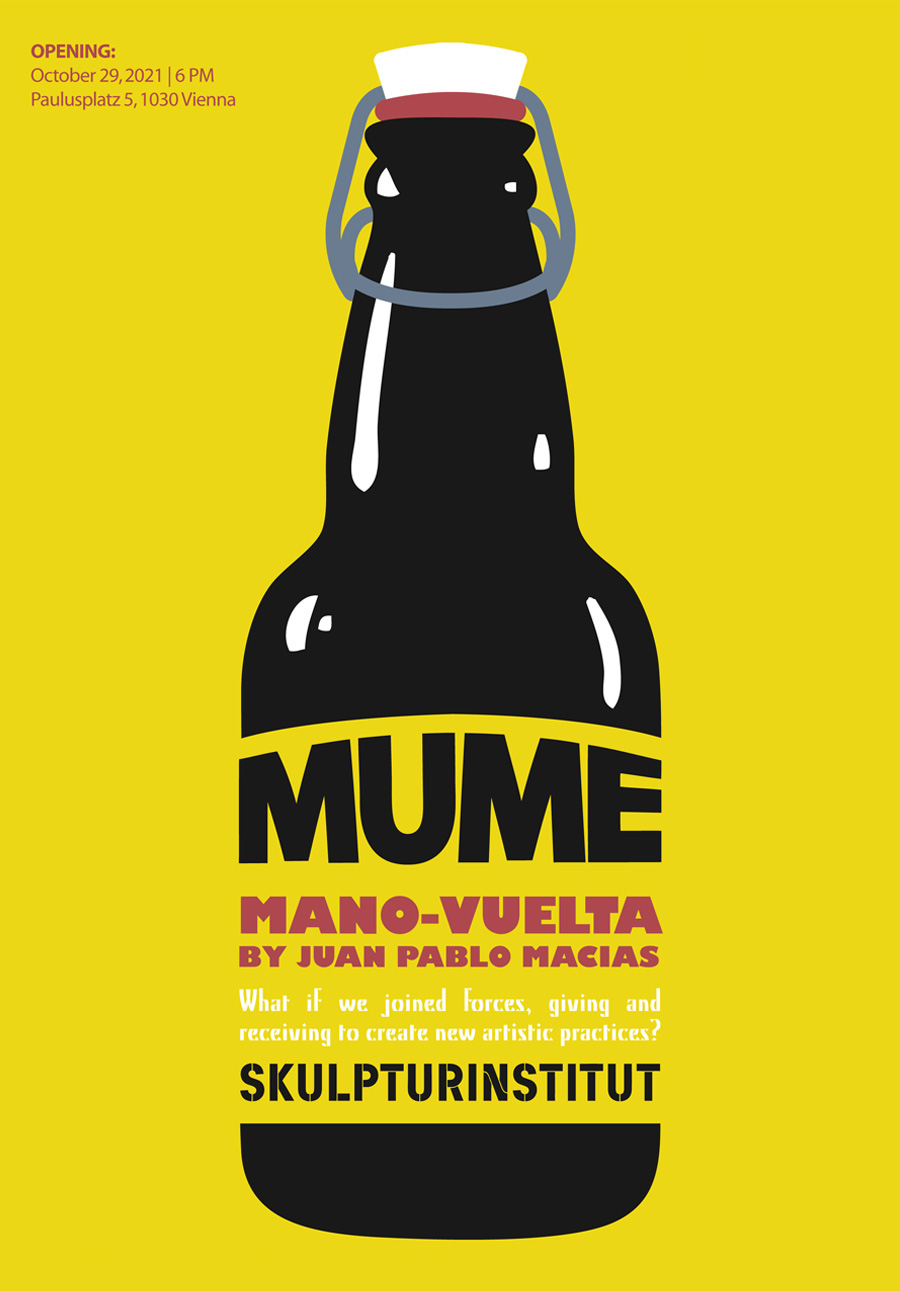 This time, MUME together with SKULPTURINSTITUT present "Mano-Vuelta", a project by Mexican artist Juan Pablo Macias. "Mano-Vuelta" consists in turning an art space into a corn brewery under the principle of collaboration and mutual help (mano-vuelta/hand-turnover). Through solidarity, common work and generosity, this processual piece attempts to rescue the sense of community that has been hijacked by abstract representations such as productivity, exchange value and democracy