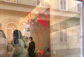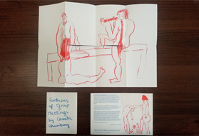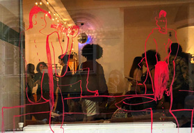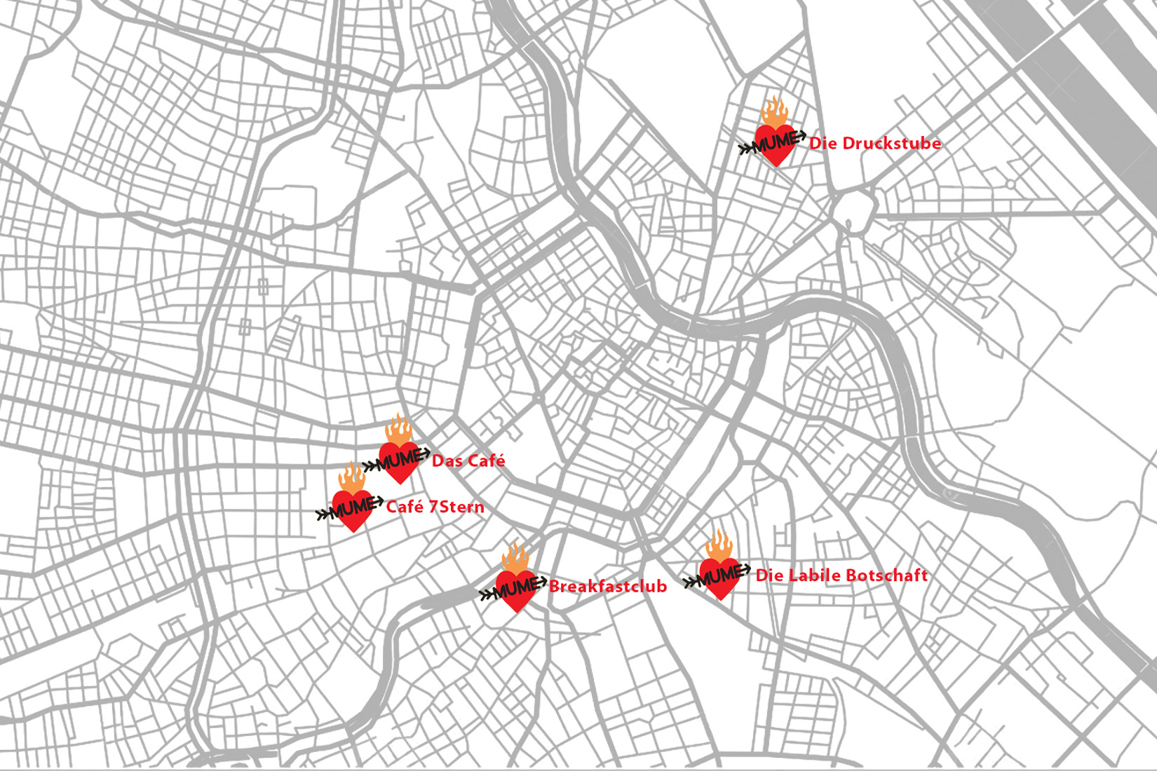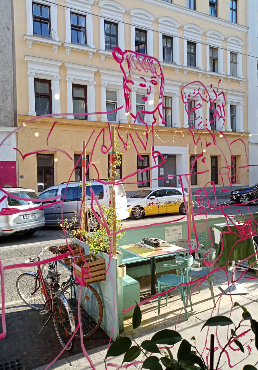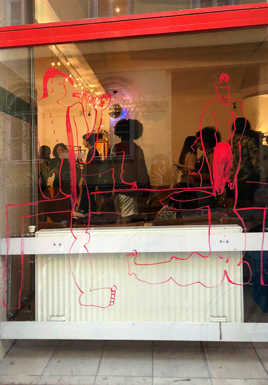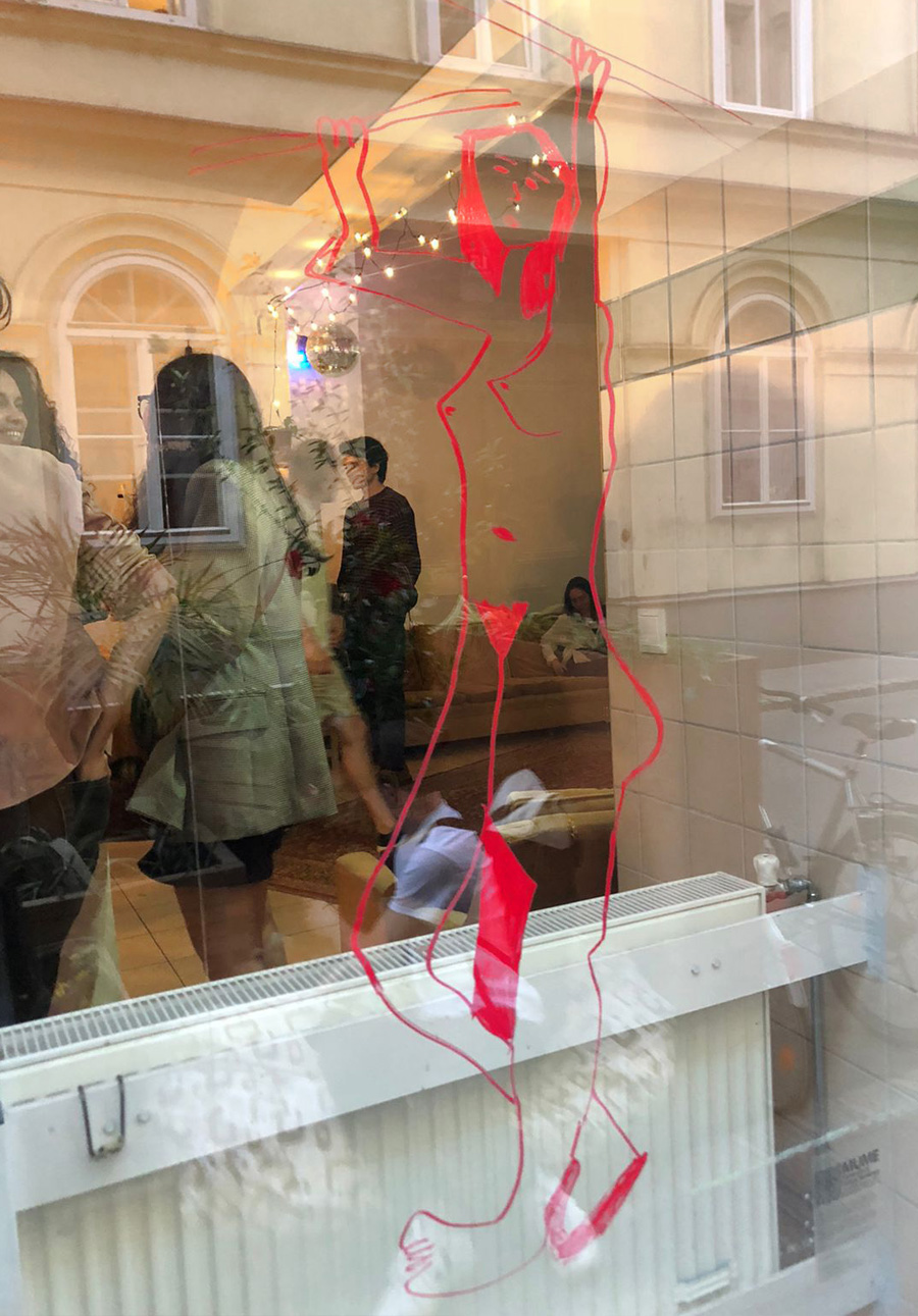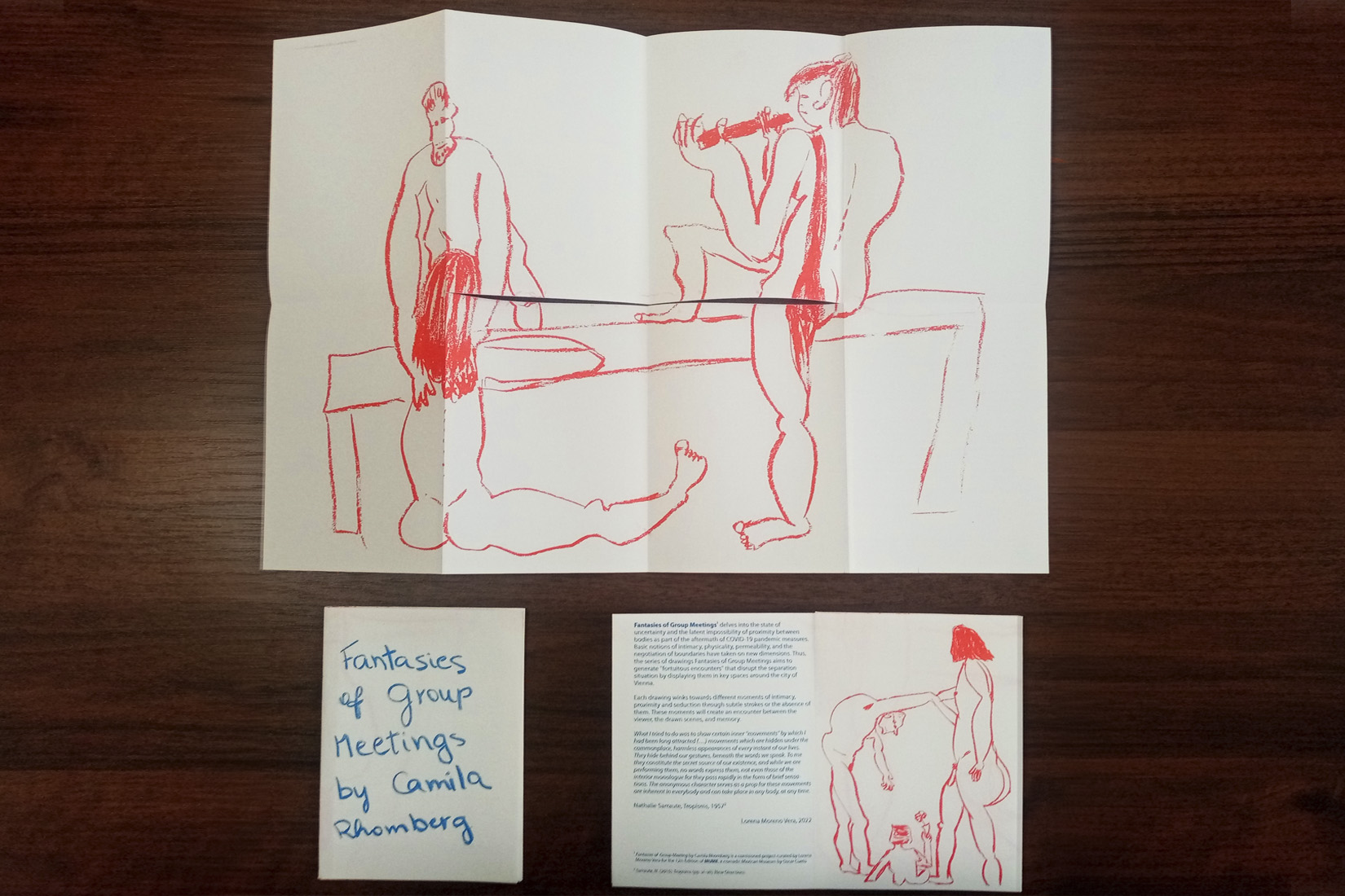 The Mexican curator Lorena Moreno Vera presents for this edition "Fantasies of Group Meetings" by the Brazilian artist Camila Rhomberg, a project which delves into the state of uncertainty and the latent impossibility of proximity between bodies as part of the aftermath of COVID-19 pandemic measures. Thus, the series of drawings Fantasies of Group Meetings aims to generate "fortuitous encounters" that disrupt the separation situation by displaying them in key spaces around the city of Vienna. Each drawing winks towards different moments of intimacy, proximity, and seduction through subtle strokes or the absence of them. These moments create an encounter between the viewer, the drawn scenes, and memory. |