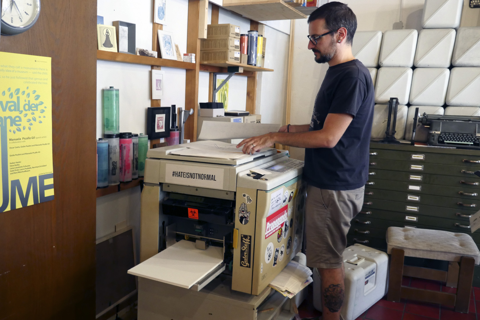 Workshop with high school students: Anti monuments, civil disobedience and risograph printing by Oscar Cueto, Giulio Paolini and Manuela Picallo Gil