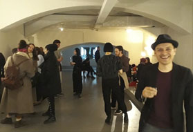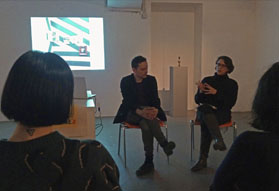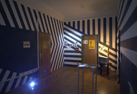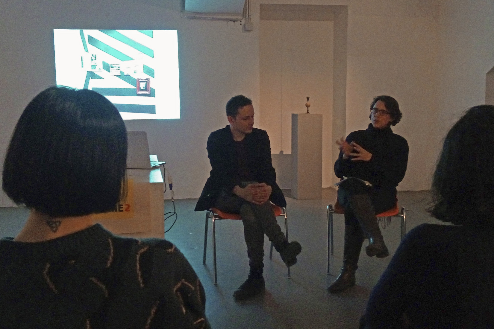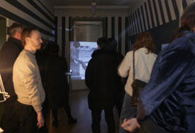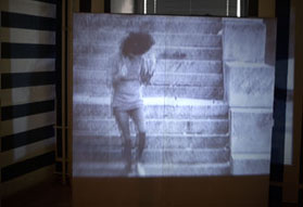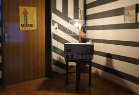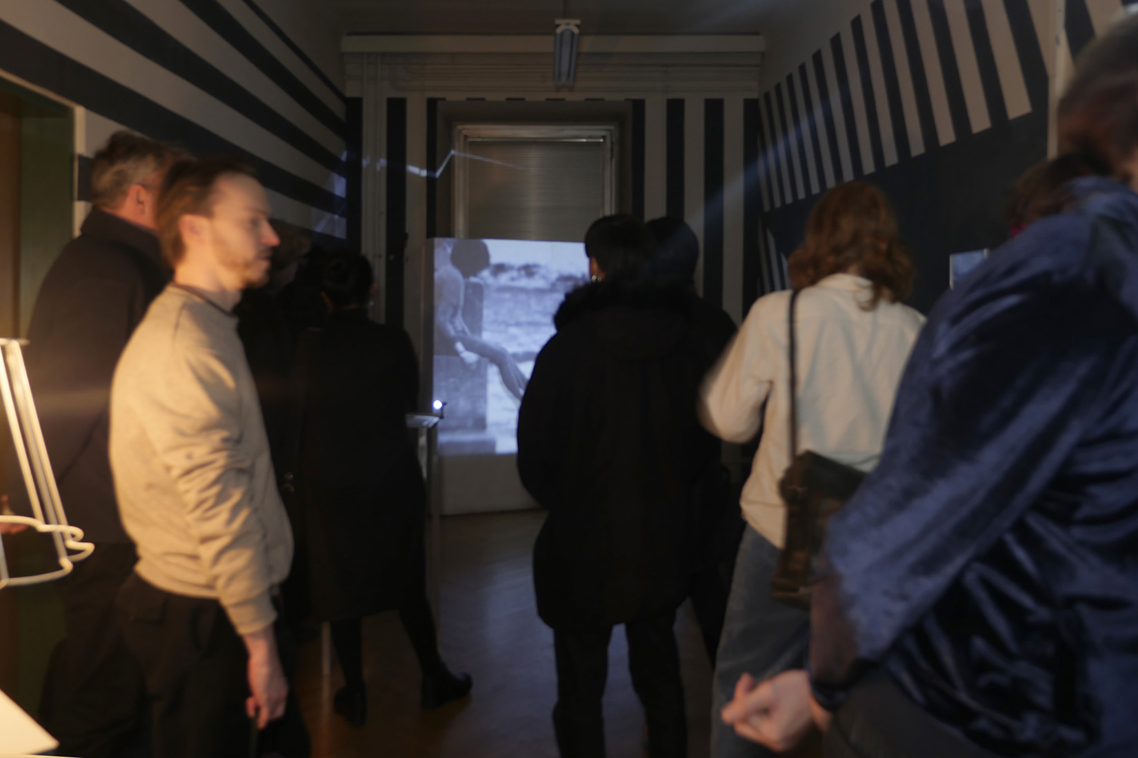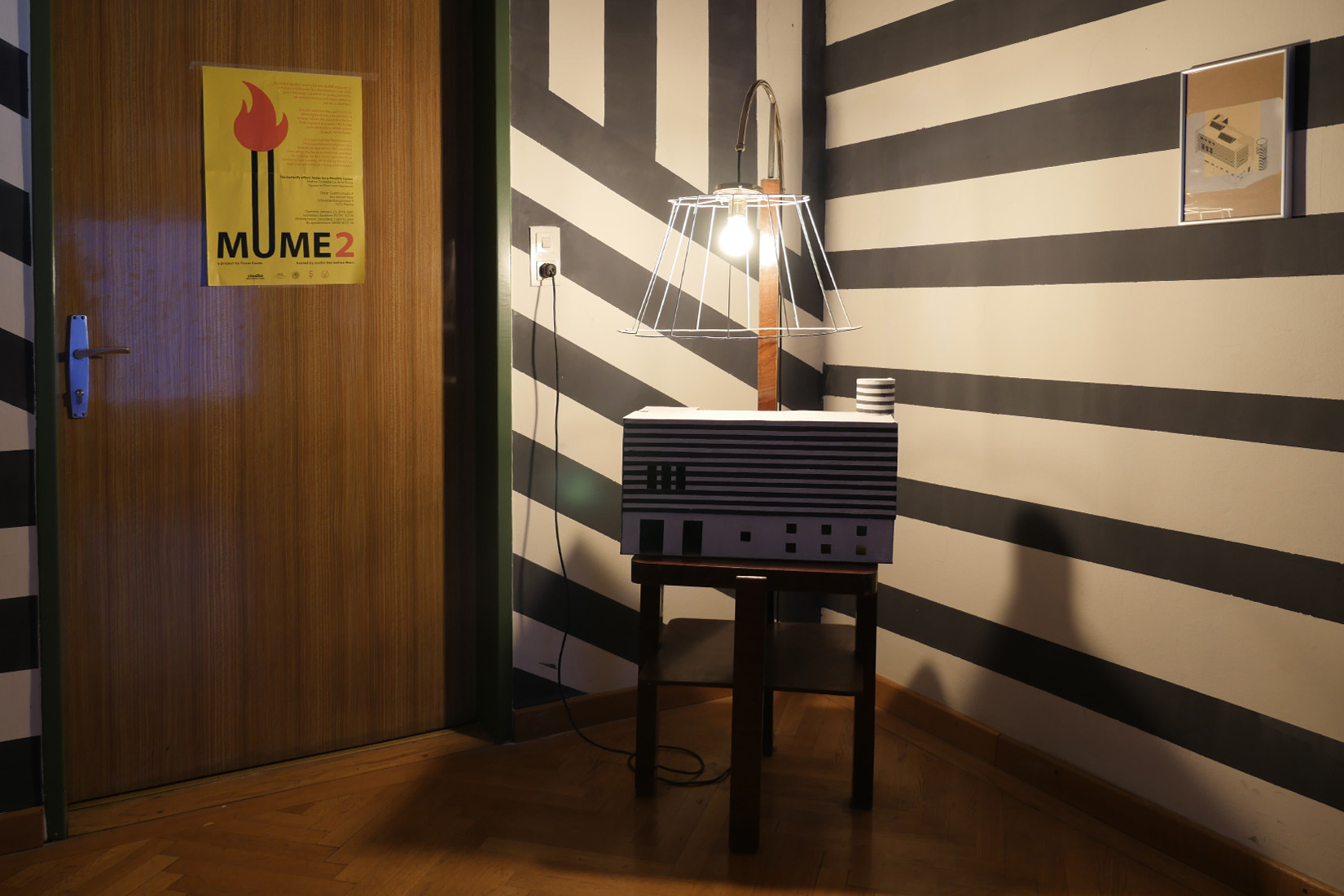 The second edition of 'MUME' took place in my former Studio and was hosted and supported by 'das weisse haus'. For this edition 'MUME' invited the mexican curator Andrea Torreblanca de la Sierra. Andrea Torreblanca was interested in anecdotes that relate to each other through minor associations and resemblances. This is a story of a possible fiction, one that connects different characters through small gestures, histories and pieces of evidence that fashion a relationship between museums, dance, politics and architecture. The Butterfly Effect: Notes for a Possible Fiction began as a personal quest to find the first female museum director in America, while Torreblanca was simultaneously being invited to realize an exhibition at MUME which was the perfect setting to replicate an itinerant "Bragg Box", ornamented as a Baker House with a "skin" that uses the pattern of dazzle warships to contain multiple stories. The museum-studio-box-house is thus set as a mise en abyme, where all facts or fictions can be seen, connected, forgotten or become invisible within an imagined place. The culmination or rather, the beginning of this story, is framed by the work of Yanieb Fabre, a Mexican artist based in Paris. Her video Neurotique New Erotique (2014) is set at the stairways of the Seine river in Paris. TEXT: SPA / ENG / GER |