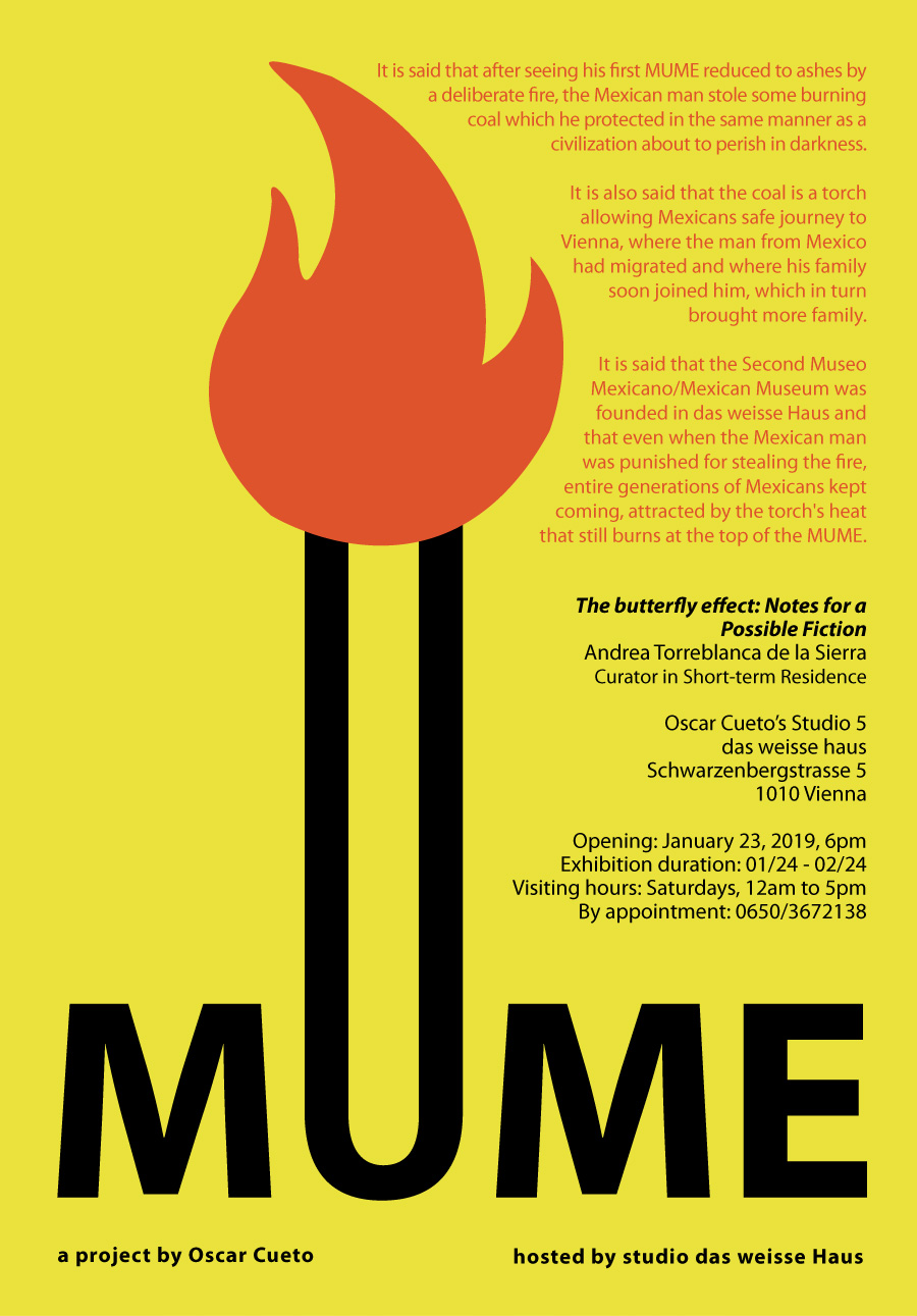 MUME (January, 2019) "The Butterfly Effect: Notes for a Possible Fiction" Andrea Torreblanca de la Sierra (guest curator) Yanieb Fabre (guest artist) |