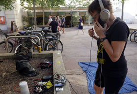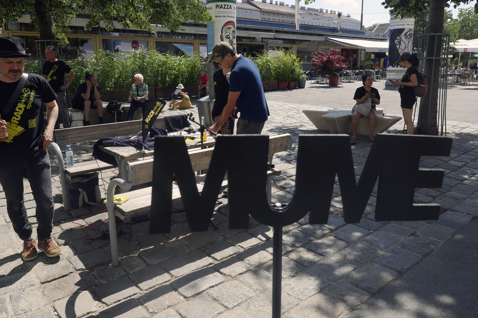 This time, MUME presented Radio Epicentro, a project by Austrian-Mexican artist Doris Steinbichler. Radio Epicentro is the extension of the Mexican artist run space Epicentro (2000-2005) to the real space of Vienna and simultaneously to the global virtual space. Radio Epicentro is a free zone that links and renegotiates language, sound, relationships and situations; as social interaction, as poetic intervention, as political utopia, as performative act. Radio Epicentro is an open microphone and a chair which can be occupie.Radio Epicentro was Live broadcasted from: Yppenplatz, Museumsquartier and Hermannpark, Vienna.