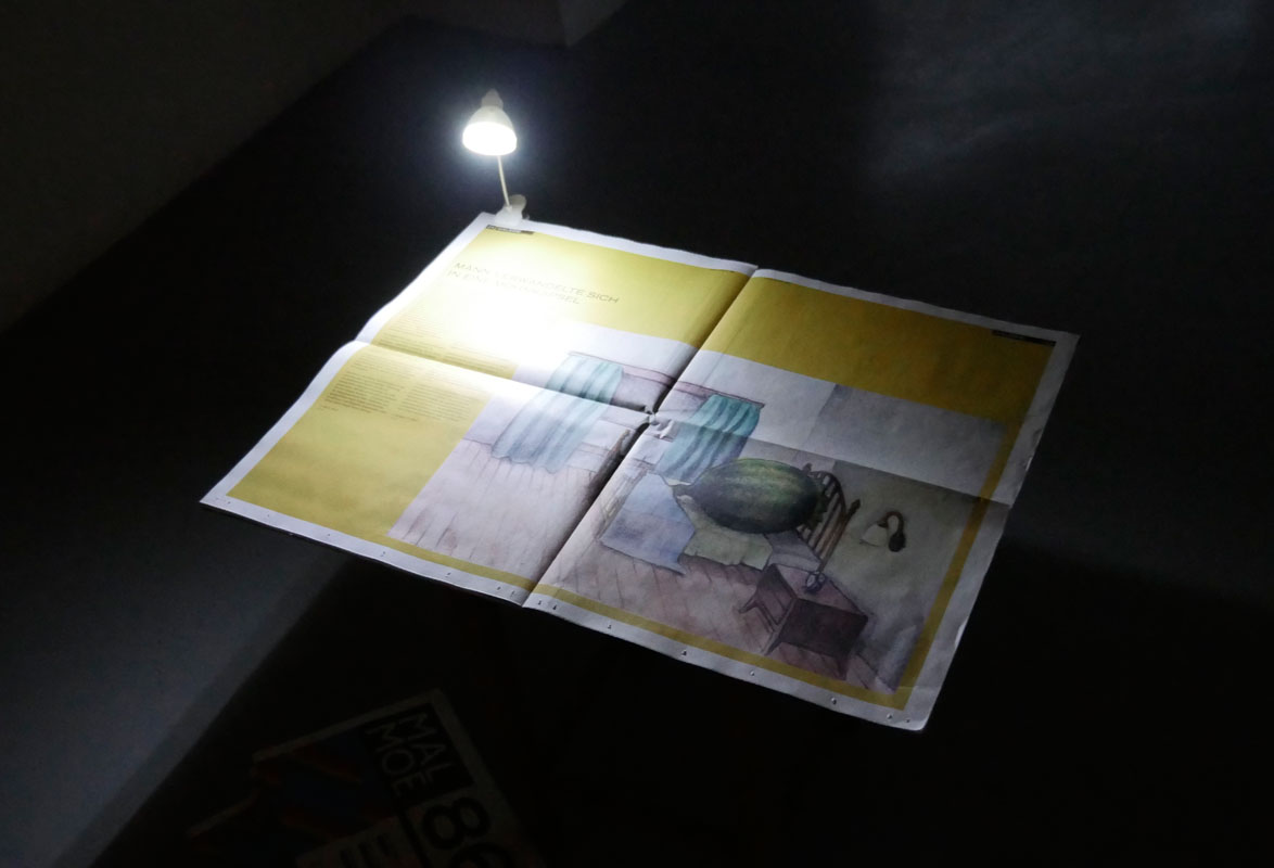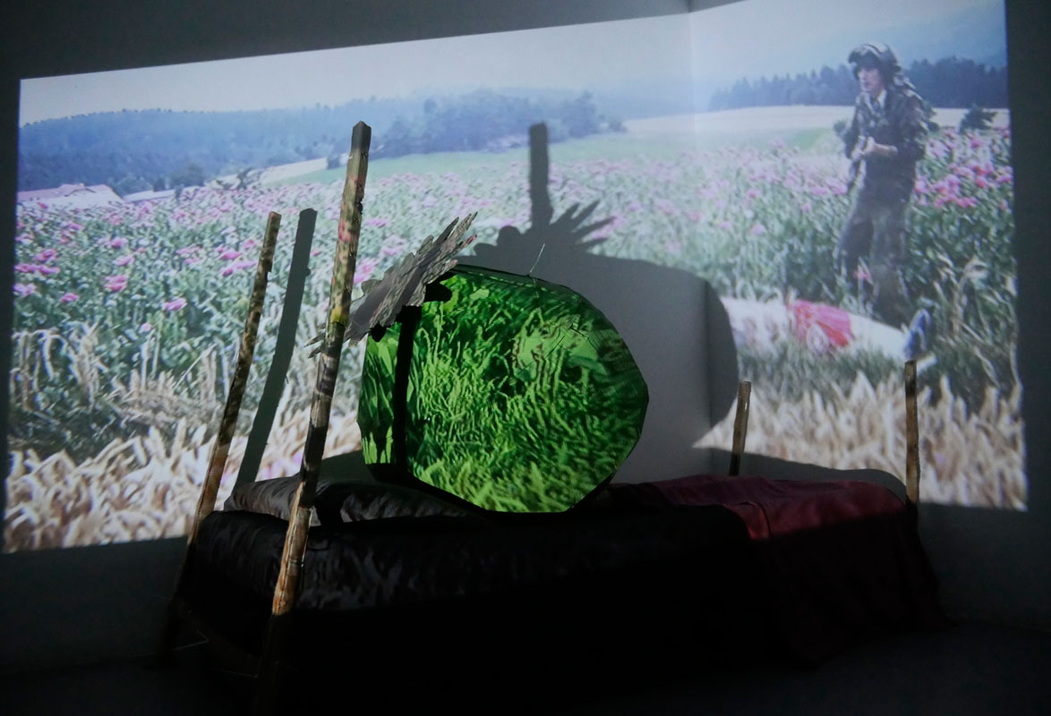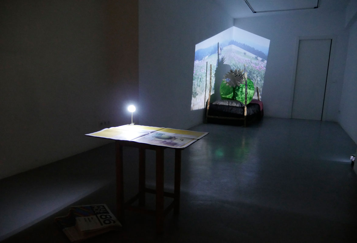 "Gregors Haus" was a video installation showed in a garage in the Usera neighborhood in Madrid, in which a man turned into a poppy capsule lies in a bed with a video projection of staged action in a poppy field in Waldviertel, Austria. The day the installation was opened to the public, a report about the mutation of the man named Gregor was published in the Austrian newspaper "MALMOE # 86". The newspaper article also introduced the installation showed in Madrid. TEXT: SPA / GER |