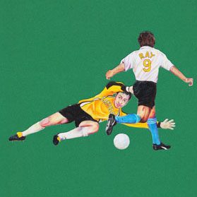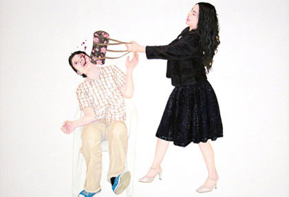 The artist as brand, product and 'art star' and the explosion of the international art market in the decade of the 2020's, which demanded more and more revenew are the influences but also the subject matter of this very first illustrative painting body of work. TEXT: SPA / EN / GER |